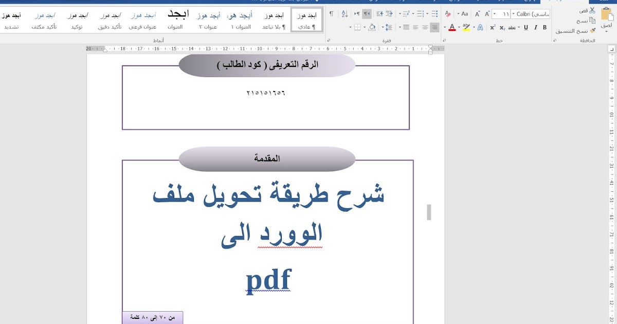 طريقة تحويل ملف مايكروسوفت وورد الى بي دي اف Word To PDF ... : مهارة لا غنى لمستخدمى برنامج مايكروسوفت وورد وبرامج الكتابه والتعديل وهى ازاى احول ملف الوورد الى ملف Pdf غير قابل للتعديل وكمان اعمله كلمه سر للحماية.